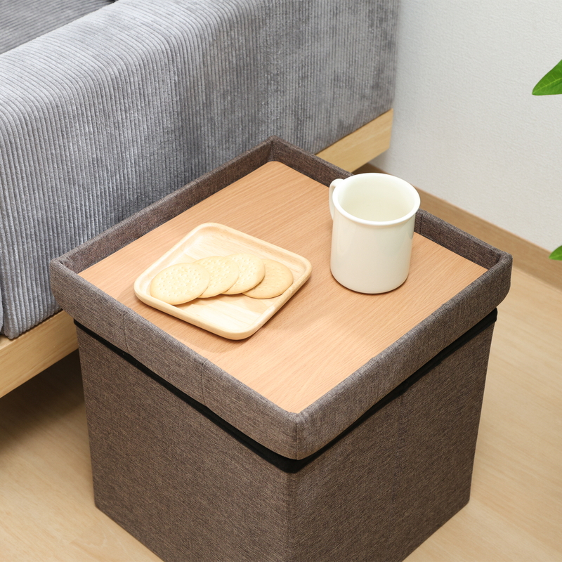 座面をひっくり返すとテーブルに早変わり。サイドテーブルとして活躍します。