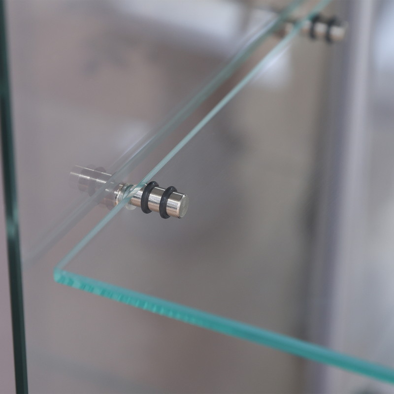 ガラス板が滑らないよう、ラバー付きのダボでしっかり固定。