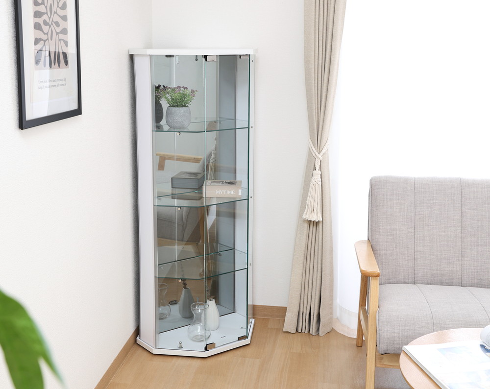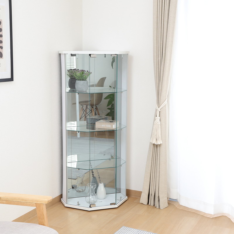 【商品名】ガラスコレクションケース BAAL コーナー WH