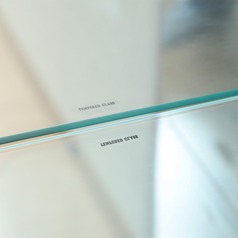 透明感のあるガラスは全面が強化ガラス。5mmの厚さがあり高級感を演出してくれます。