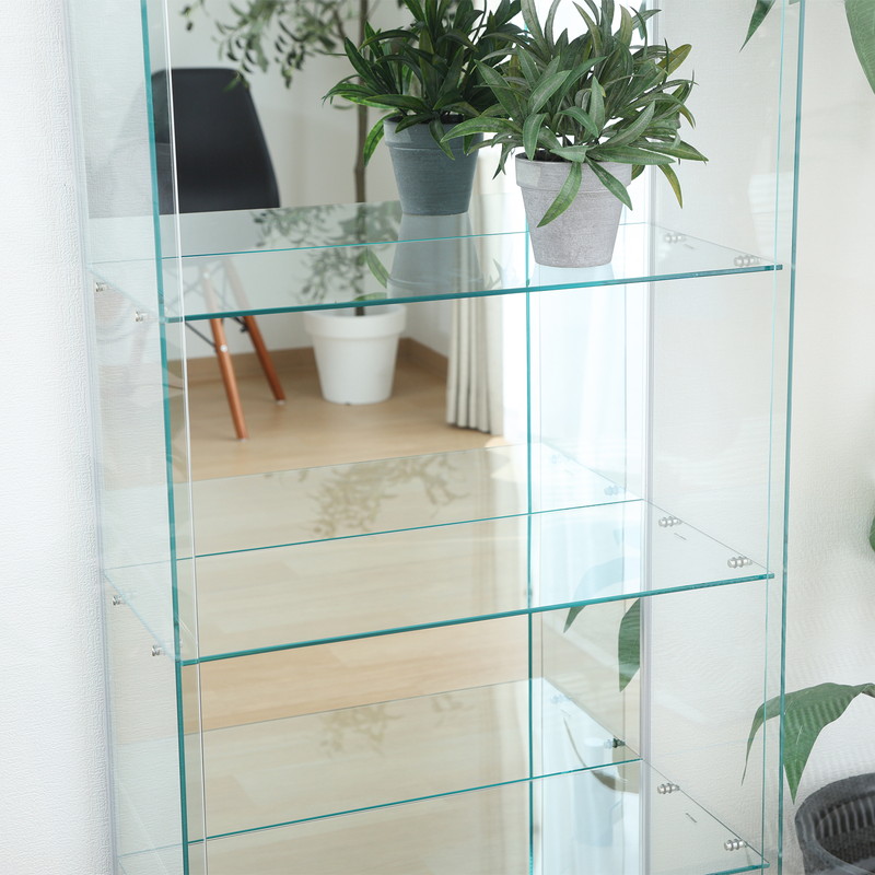 お気に入りのコレクションを様々な角度から楽しめる背面ミラー仕様です。通常のミラーより2~3倍強度アップした強化ミラーを使用しています。