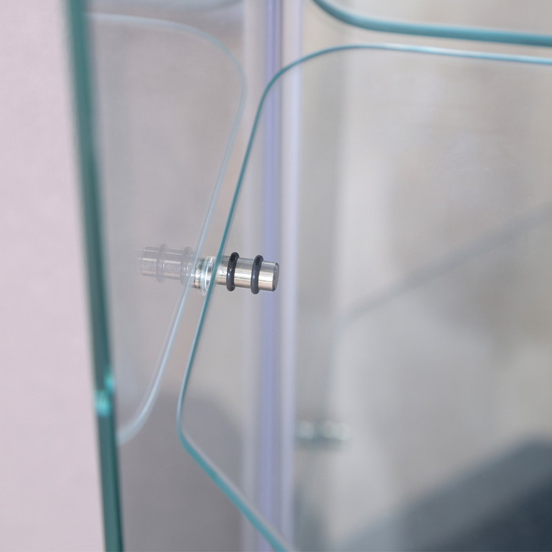 ガラス板が滑らないよう、ラバー付きのダボでしっかり固定。