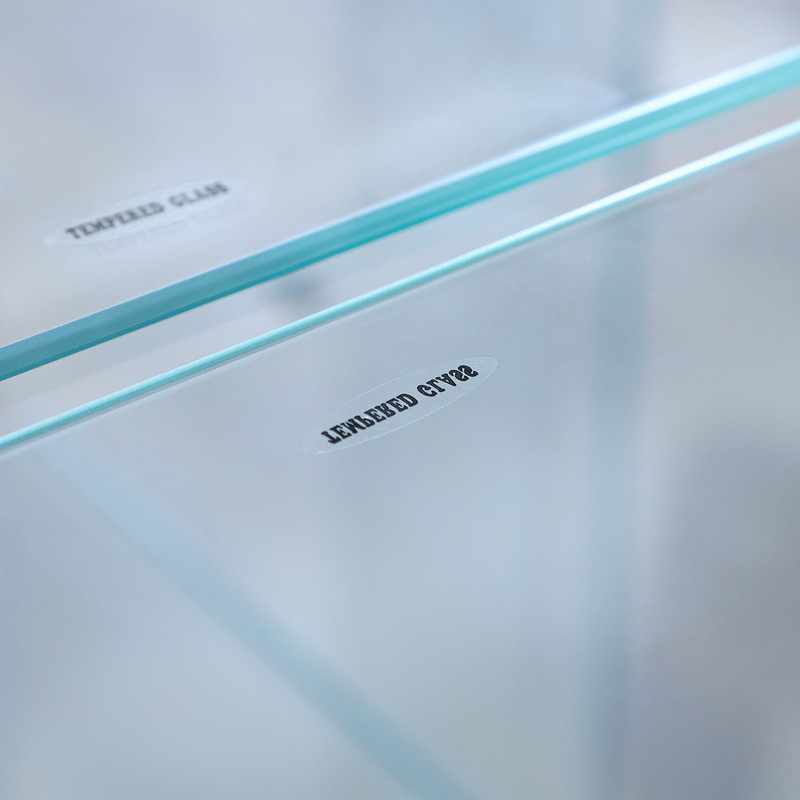 透明感のあるガラスは全面が強化ガラス。5mmの厚さがあり高級感を演出してくれます。