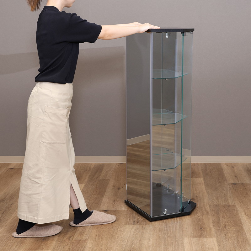 お気に入りのコレクションを様々な角度から楽しめる背面ミラー仕様です。通常のミラーより2~3倍強度アップした強化ミラーを使用しています。