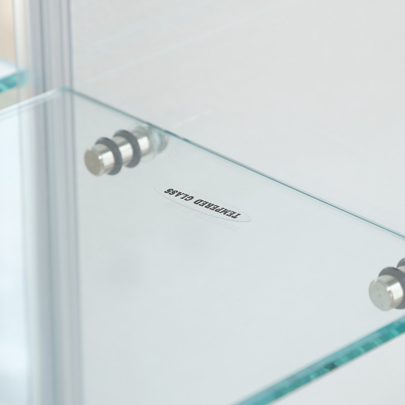 【材質】■構造部材(天板/地板):プリント紙化粧繊維板 ■構造部材(側板/棚板/扉板):強化ガラス ■構造部材(背面ミラー):ガラス(飛散防止フィルム加工)