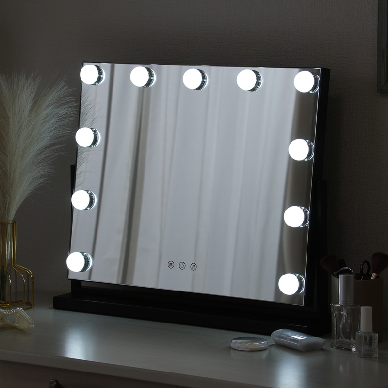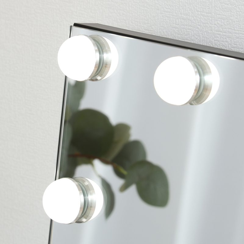 11球のLEDでしっかり照らします。天気や部屋の明るさを気にせずメイクが可能です。