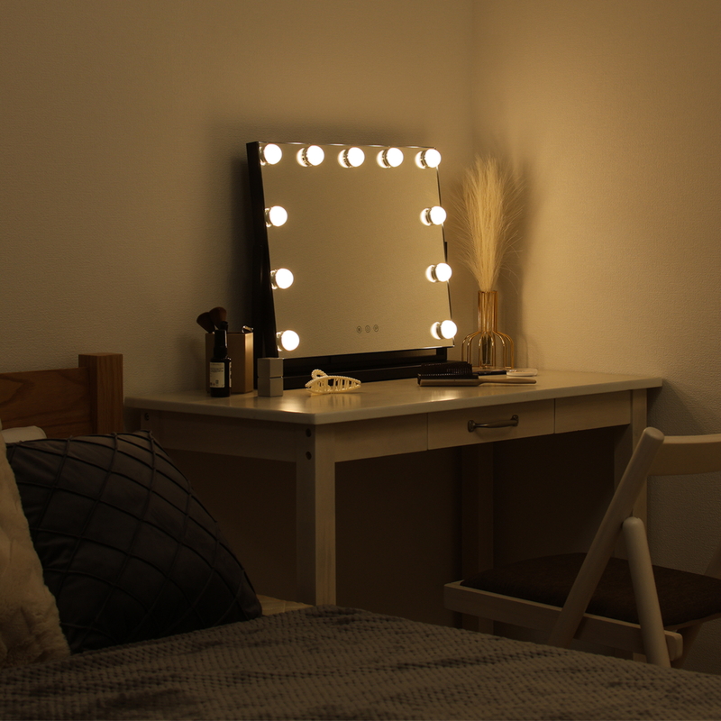 大きくて見やすく、メイクからヘアスタイリングまでしっかり確認できます。またデスクと合わせてドレッサー風にも。