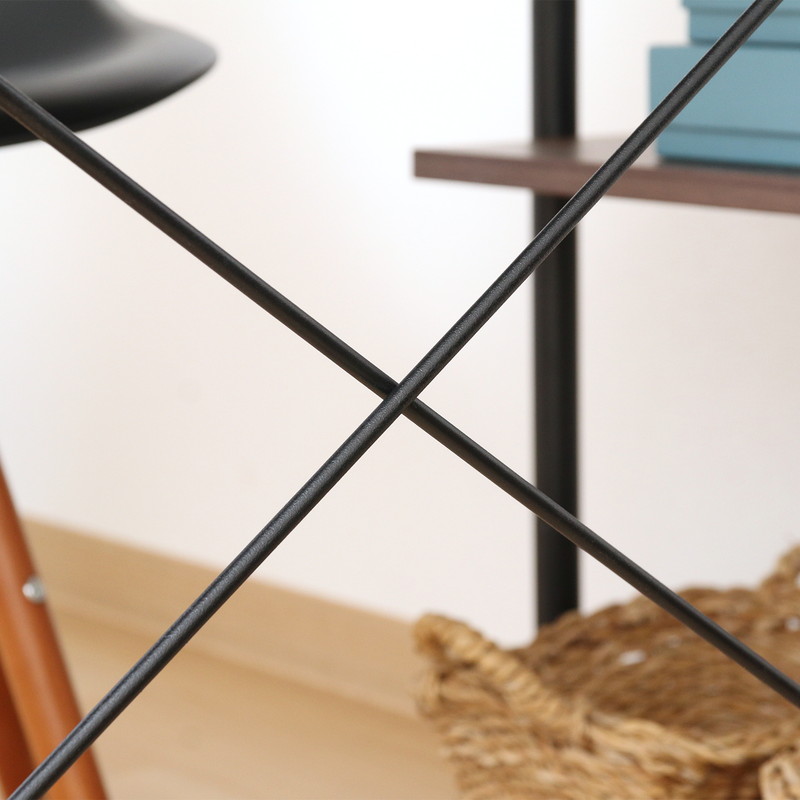 デスクとサイドのラック下部にはクロスバーで補強しているため、使用中の横揺れを防ぎます。