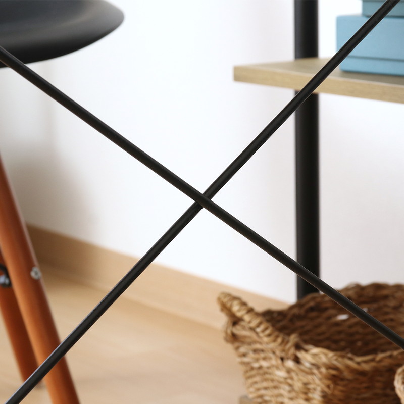 デスクとサイドのラック下部にはクロスバーで補強しているため、使用中の横揺れを防ぎます。