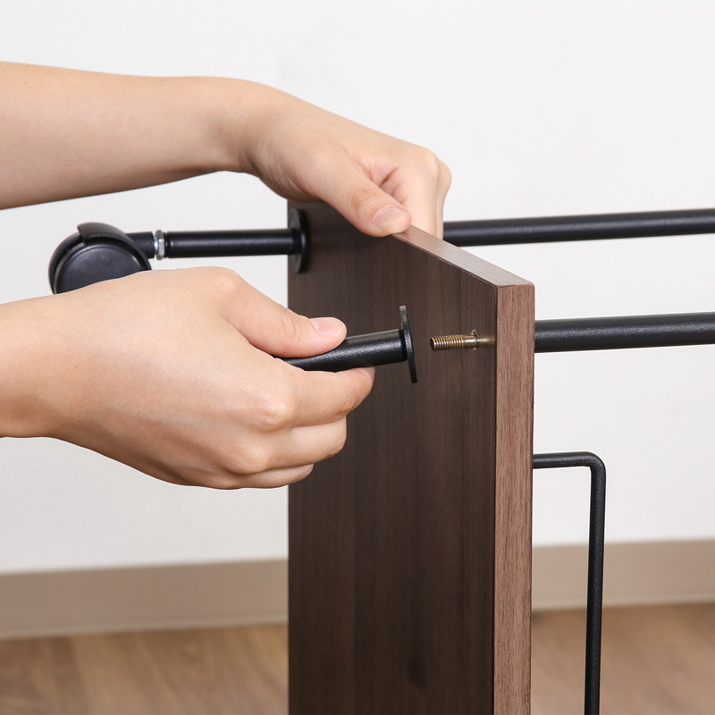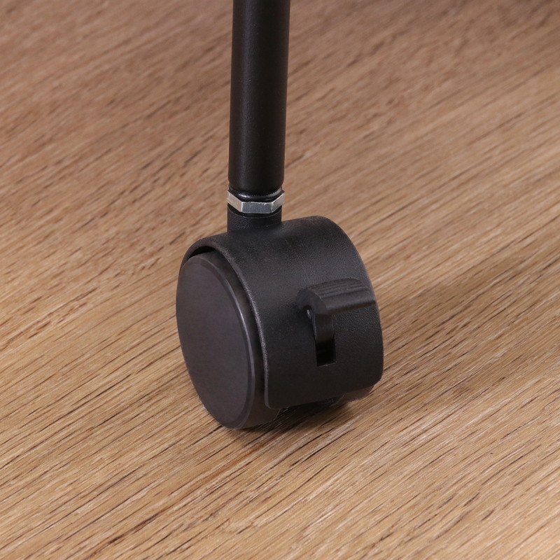 移動させない時は2個所のキャスターに付いているストッパーで固定。天板で作業する時など安全です。