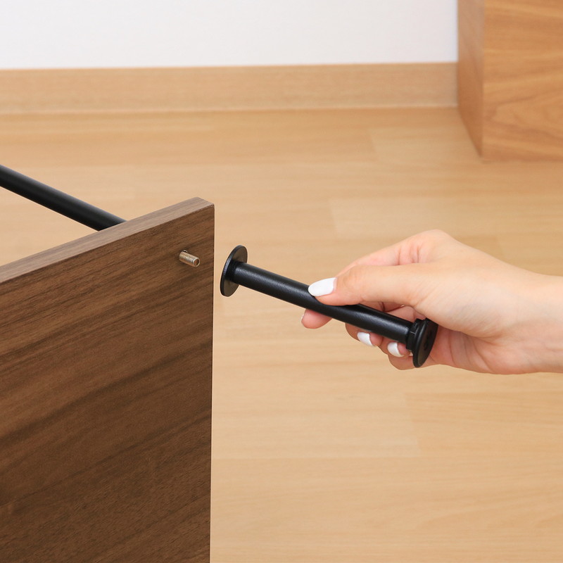 落ち着いた色味の木目とブラックスチールを合わせた相性の良い組み合わせで、お部屋にも馴染みます。