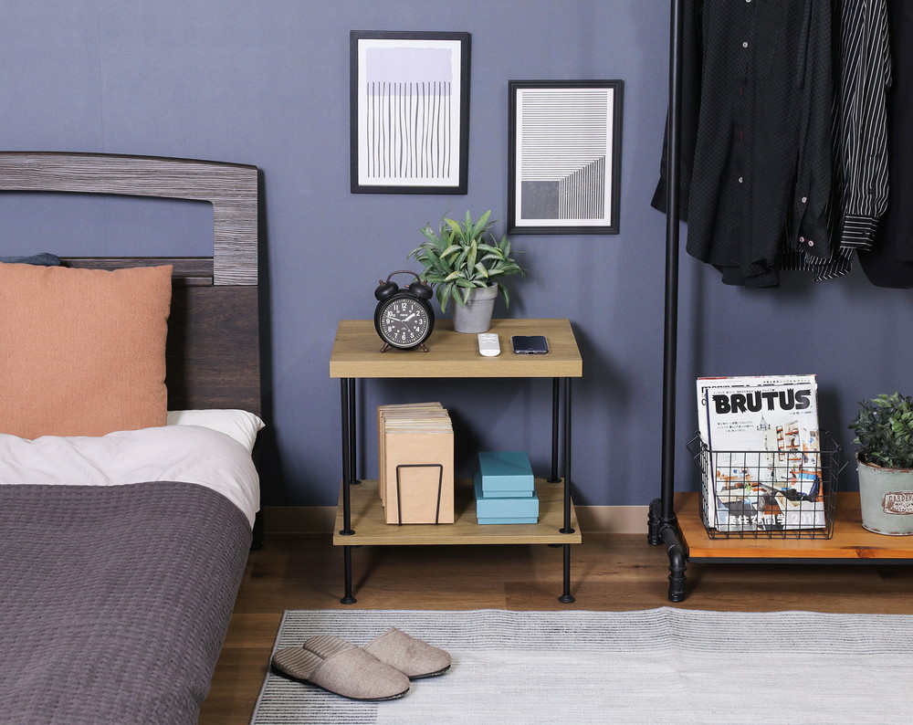 落ち着いた色味の木目とブラックスチールを合わせた相性の良い組み合わせで、お部屋にも馴染みます。