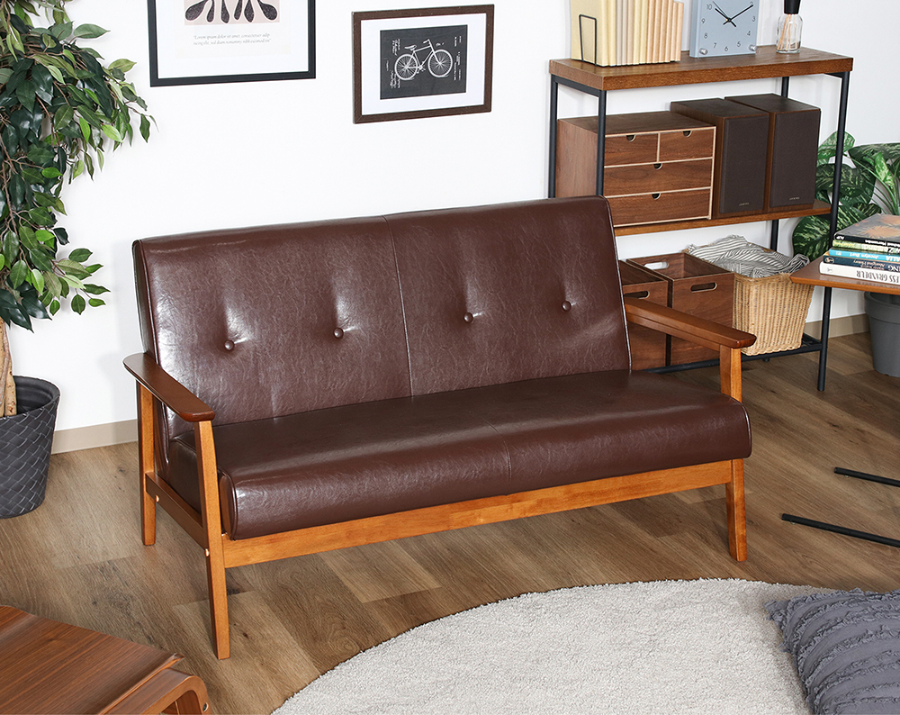 【商品名】バイキャストPUソファ ミート 2P LBR