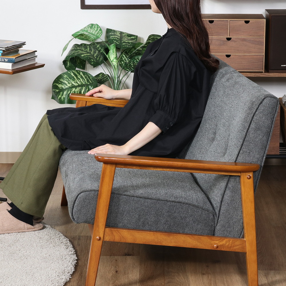 ひじ掛けがあるので立ち座りもしやすく、少し傾斜のある座面で身体が自然ともたれるデザインになっています。