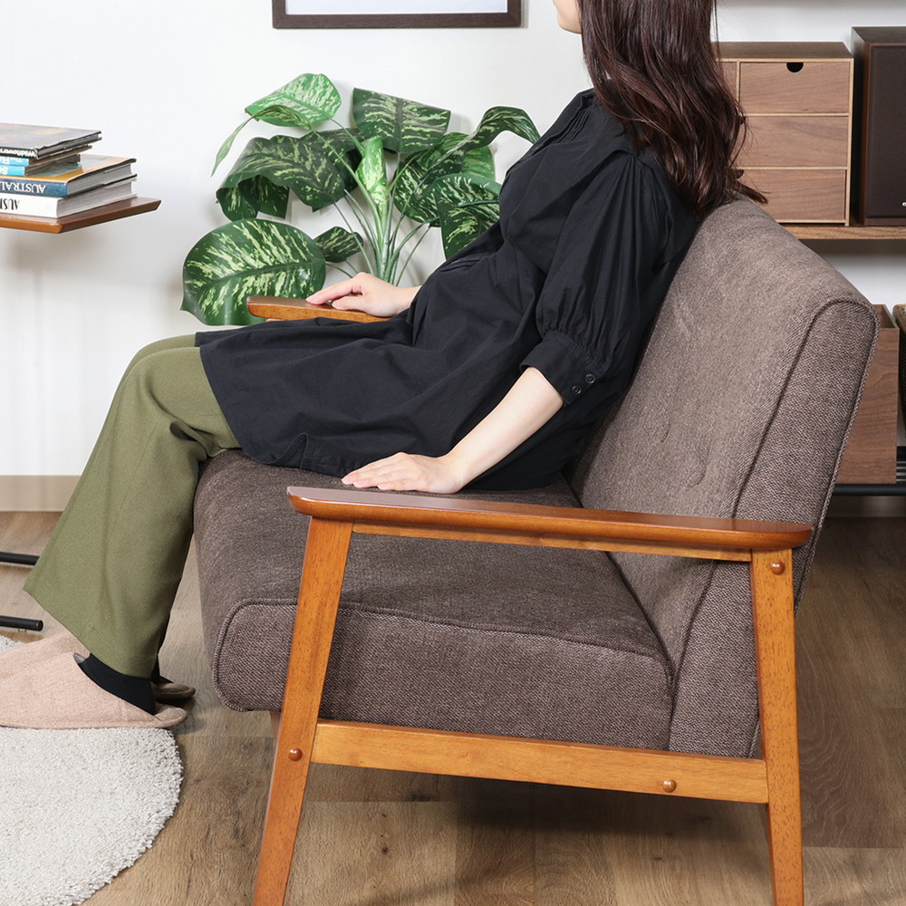 ひじ掛けがあるので立ち座りもしやすく、少し傾斜のある座面で身体が自然ともたれるデザインになっています。