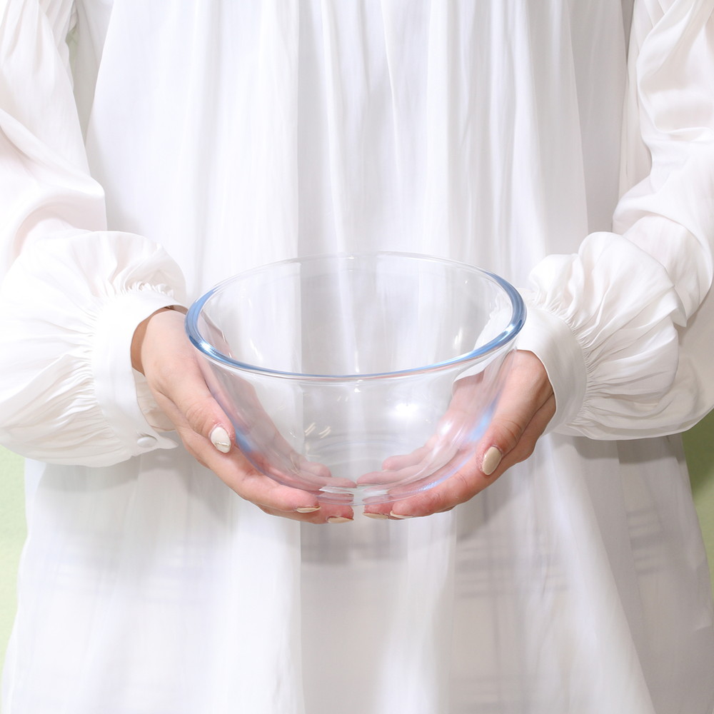 一般的な耐熱ガラスはグリーンがかっていますが、コバルトブルーを意識した爽やかな色合いで清潔感があり、中の食材を引き立てます。