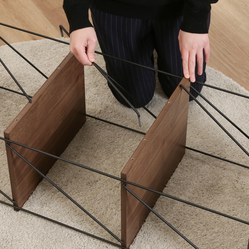 棚板の穴にワイヤーフレームを差し込むだけで完成する「ワイヤーロックシステム」を採用したシリーズで、手軽におしゃれなインテリアを楽しめます。