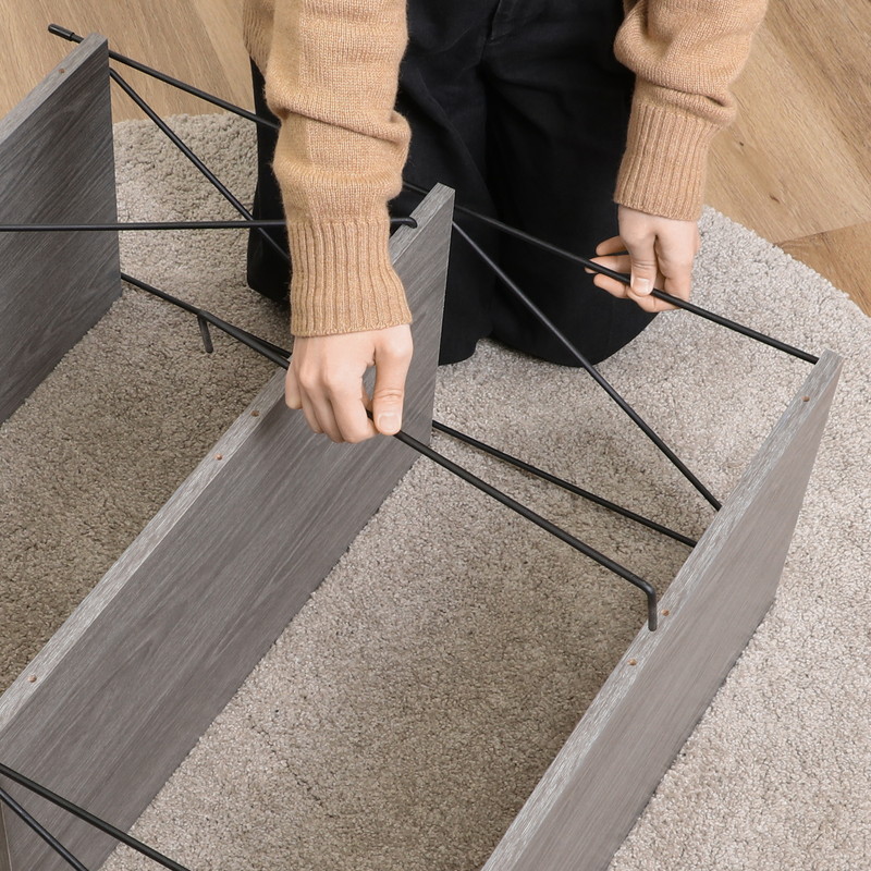棚板の穴にワイヤーフレームを差し込むだけで完成する「ワイヤーロックシステム」を採用したシリーズで、手軽におしゃれなインテリアを楽しめます。