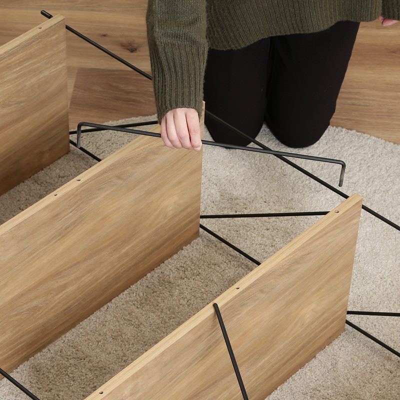棚板の穴にワイヤーフレームを差し込むだけで完成する「ワイヤーロックシステム」を採用したシリーズで、手軽におしゃれなインテリアを楽しめます。