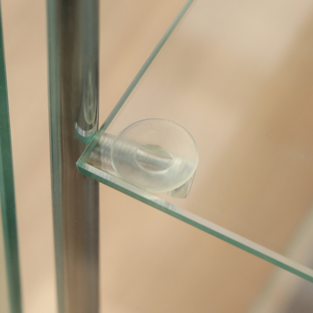 ガラス板をしっかり吸着して固定する吸盤付きのダボを採用。
