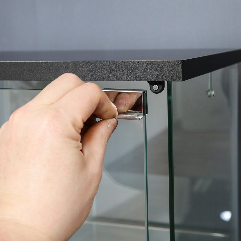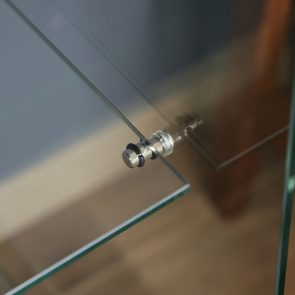 ガラス板が滑らないよう、ラバー付きのダボでしっかり固定。