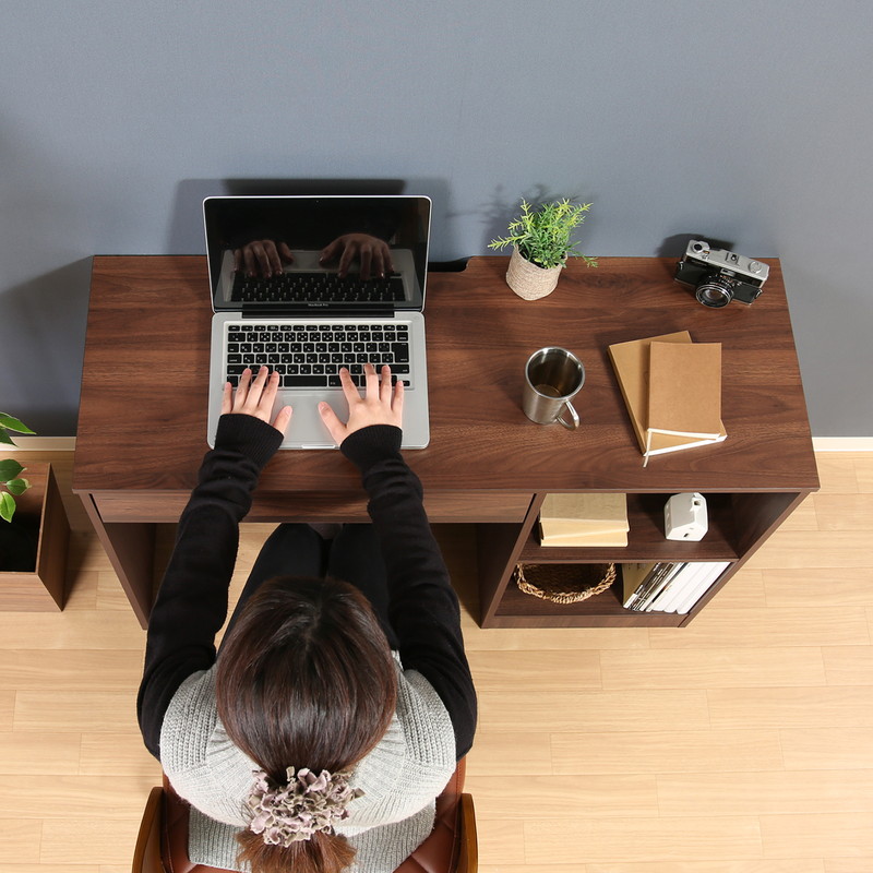 幅110×奥行40cmの広々した天板。PCデスクとしても、勉強や作業をするのにも快適なスペース。