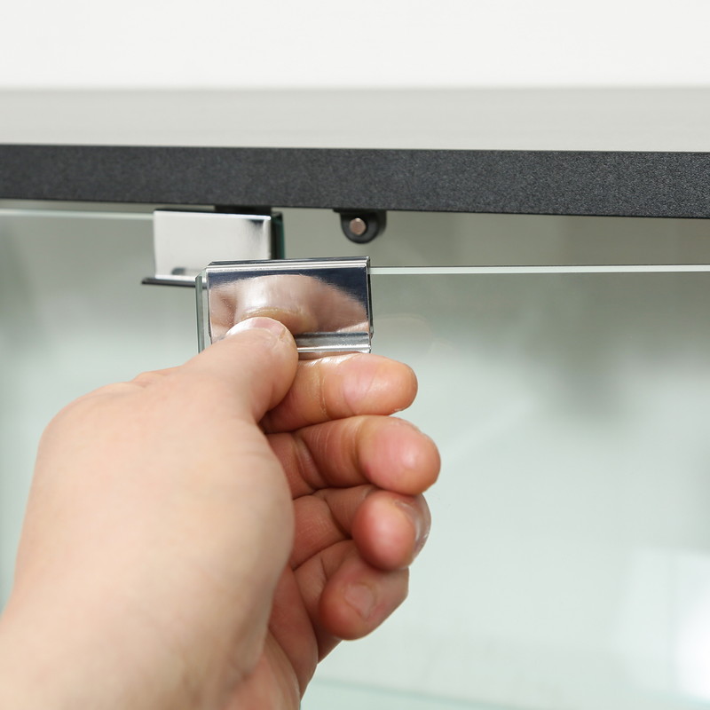 ガラス板をしっかり吸着して固定する吸盤付きのガラス受けを採用。