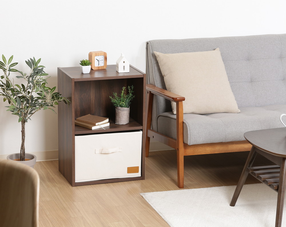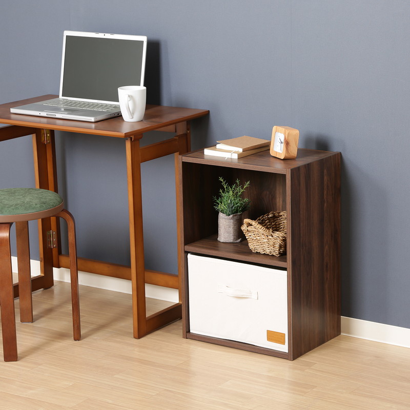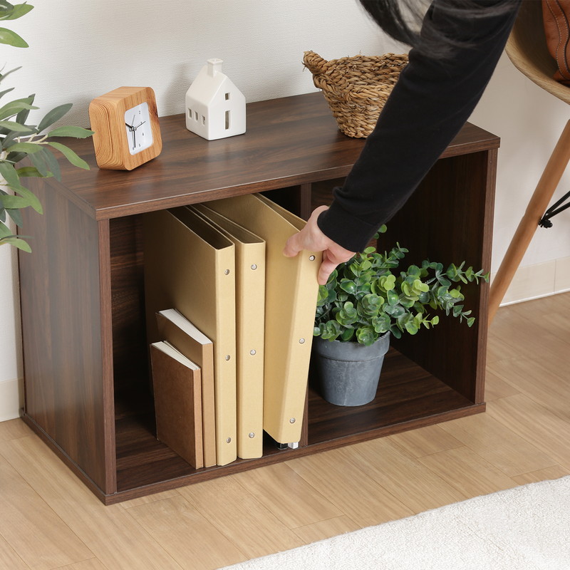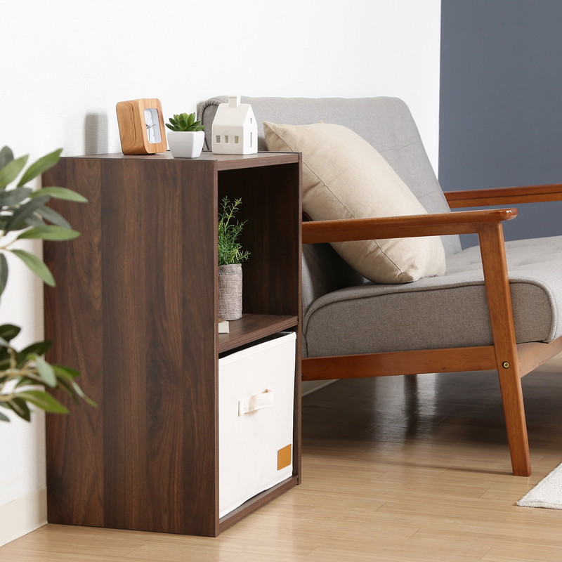 高さ60cmのロータイプなので、デスクやソファ横に置いて天板をテーブル代わりに使うこともできます。